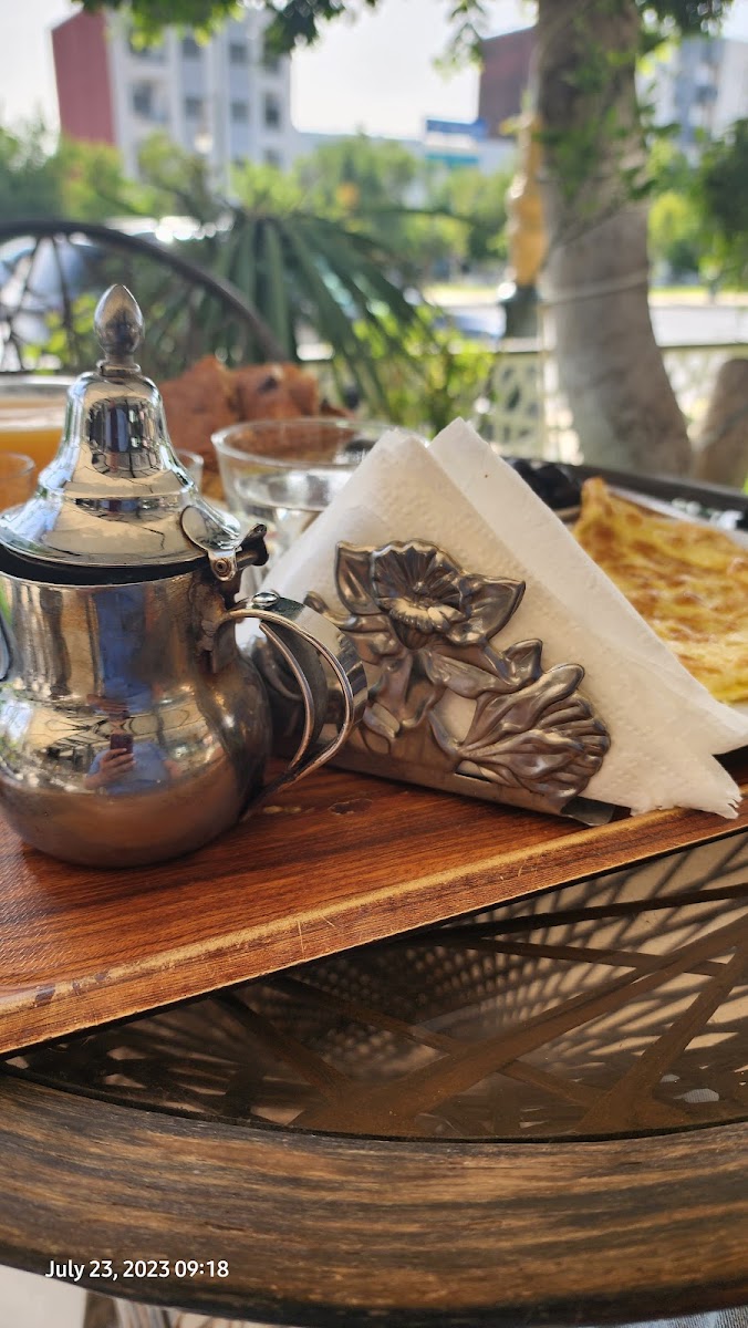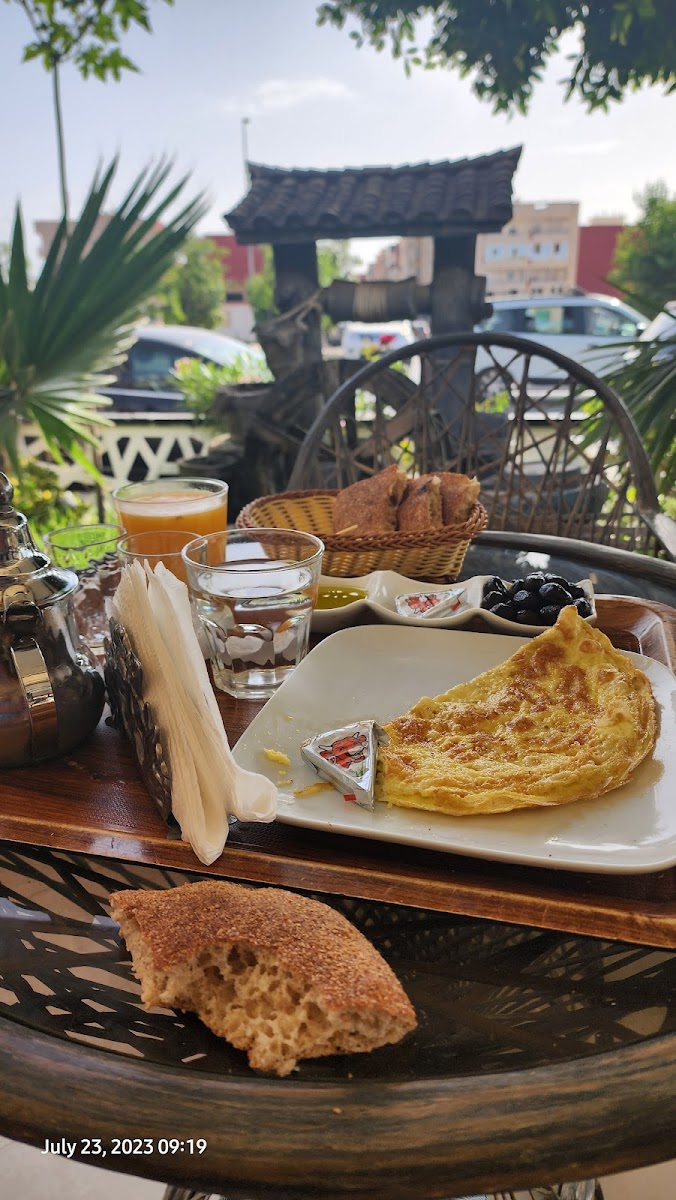 One of the highlights of this café is its Moroccan Tea, served with Mlawi, a traditional Moroccan flatbread. This perfect pairing is a must-try for anyone wanting to experience the authentic flavors of Morocco. For those who prefer a heartier breakfast or snack, the Moroccan Tea with Omelette is another signature dish that is both satisfying and flavorful.